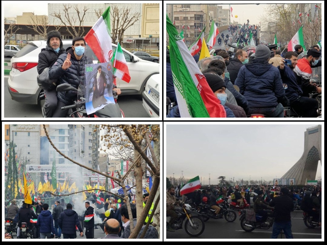 وفي العاصمة الإيرانية طهران انطلقت المسيرات من ساحة "آزادي" في طهران لما لها من رمزية لدى المواطن الايراني، حيث كانت قبلة مسيرات 22 بهمن من الشهر الايراني (11 شباط عام 1979) في كل سنة.