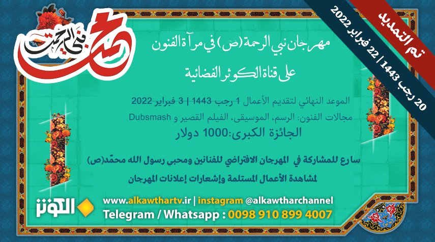 وسيتم الاعلان عن تفاصيل المهرجان من خلال برنامج مباشر يعرض على قناة الكوثر الفضائية في ليلة المولد النبوي الشريف.