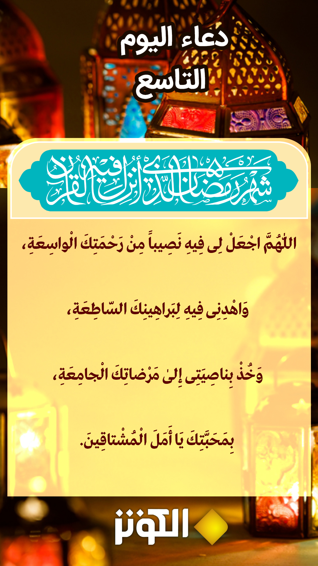 " اللَّهُمَّ اجْعَلْ لِي فِيهِ نَصِيباً مِنْ رَحْمَتِكَ الْوَاسِعَةِ، وَ اهْدِنِي فِيهِ لبَرَاهِينِكَ السَّاطِعَةِ ، وَ خُذْ بِنَاصِيَتِي إِلَى مَرْضَاتِكَ الْجَامِعَةِ، بِمَحَبَّتِكَ يَا أَمَلَ الْمُشْتَاقِينَ".