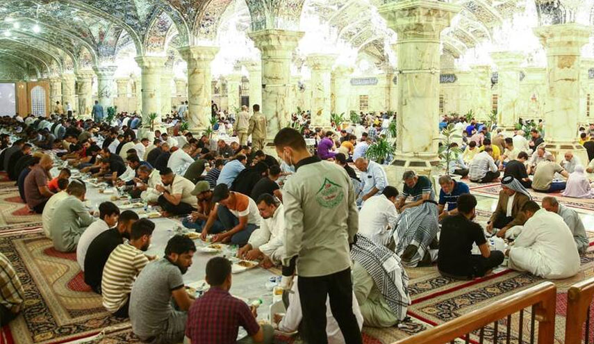 بالصور... موائد الإفطار في صحن فاطمة الزهراء (عليها السلام) في النجف الأشرف