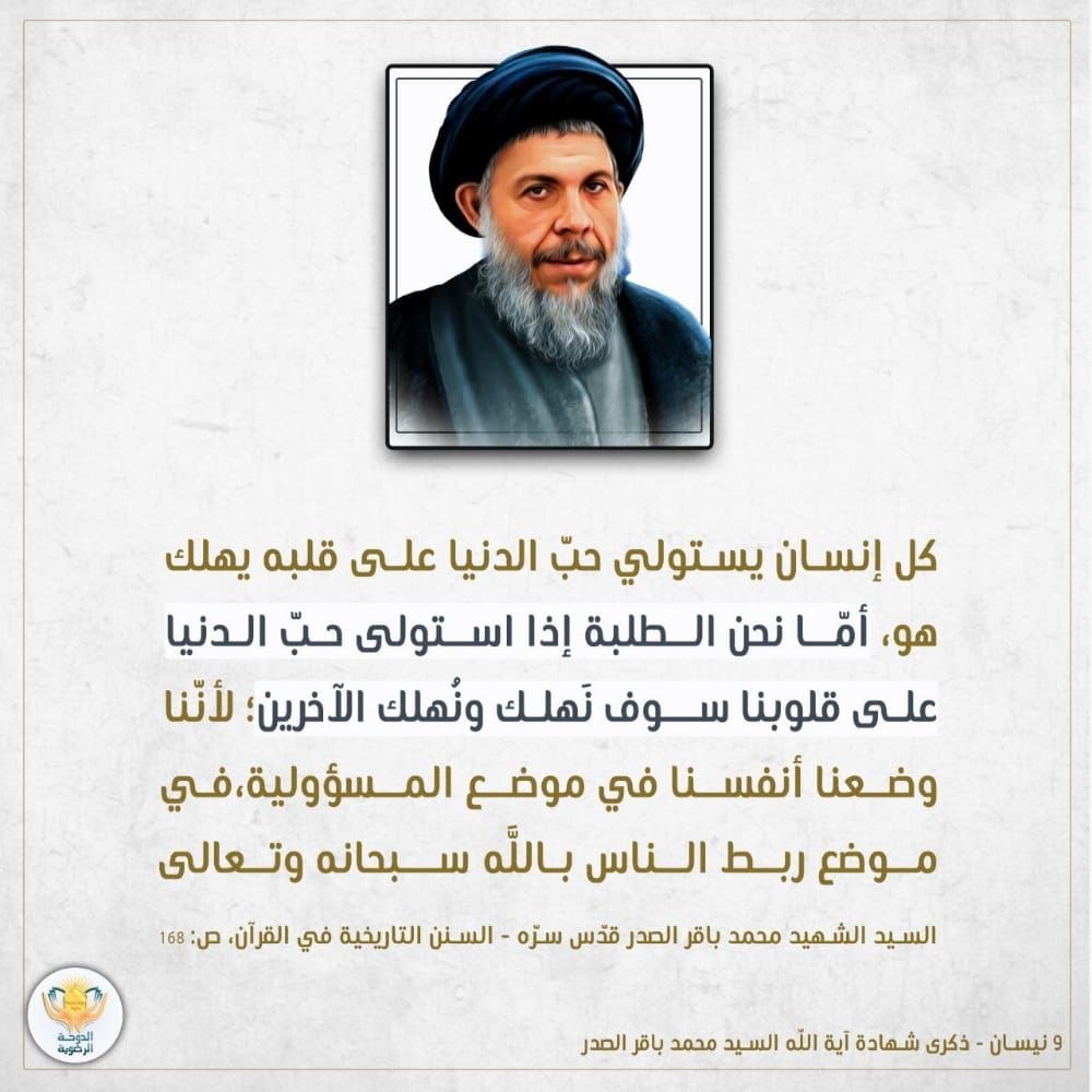كلُّ إنسانٍ يَستَوْلِي حبُّ الدنيا على قَلْبه يَهْلَكُ هو، أمّا نحن الطلبة إذا استَوْلَى حبُّ الدنيا على قلوبنا سوف نَهلك ونُهلك الآخرين؛ لأنّنا وَضَعْنا أنفسنا : في موضع المسؤولية في موضع رَبْط الناس بالله سبحانه وتعالى.
