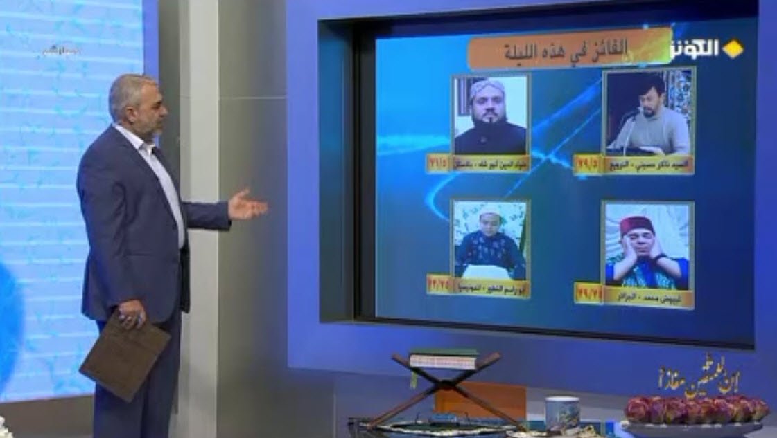 إعلان عن أسماء القرّاء الفائزين بالمراتب الخمس الأولى من الذين شاركوا في مسابقة إن للمتقين مفازا، مساء أمس.