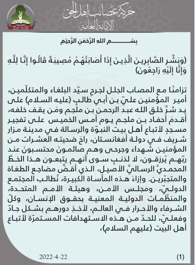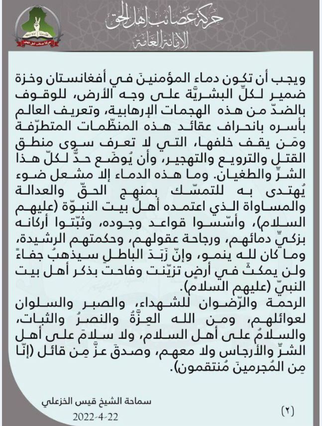 وقال الشيخ الخزعلي في تغريدة على موقعه في “تويتر” واطلعت عليها “العهد نيوز”، :”نطالب المجتمع الدولي ومجلس الامن وهيئة الامم المتحدة والمنظمات الدولية المعنية بحقوق الانسان لاخذ دورهم للحد من الاستهدافات المستمرة لاتباع اهل البيت عليهم السلام”.