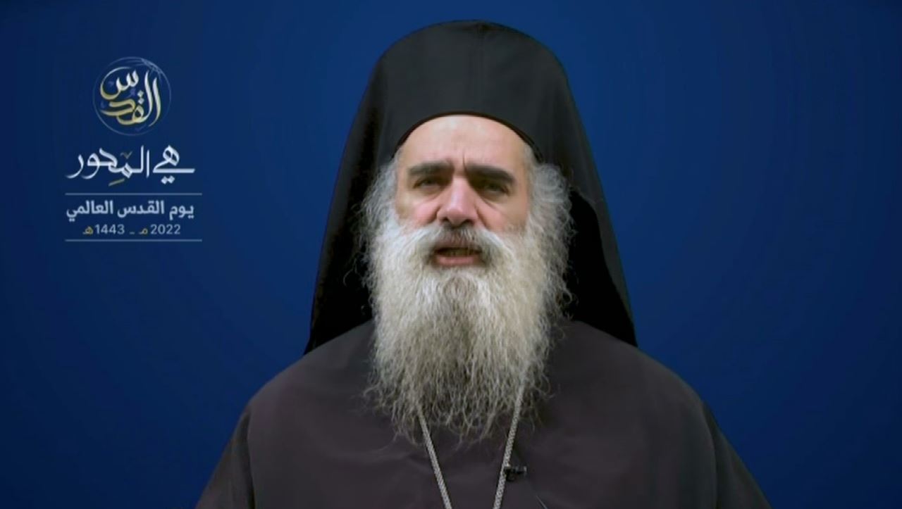 ونحن بدورنا نوجه تحية الوفاء والتقدير لكل أصحاب الفضيلة والسماحة ولكل الأحباء المرابطين المدافعين عن الأقصى ونقول لكم. بأن التعدي على الأقصى هو تعدي على كنيسة القيامة، ومن يعتدي على المسلمين في مقدساتهم يعتدي على المسيحيين في مقدساتهم، وكما يستهدف الأقصى هكذا تستهدف أيضا مقدساتنا وأوقفنا المسيحية. إن أولئك الذين يتآمرون على الأقصى بهدف تقسيمه زمنيا ومكانيا هما ذاتهم المتآمرون على المسيحيين في أوقافهم ومقدساتهم وحتى في أعيادهم. لا يريدوننا أن نحتفل في أعيادنا.