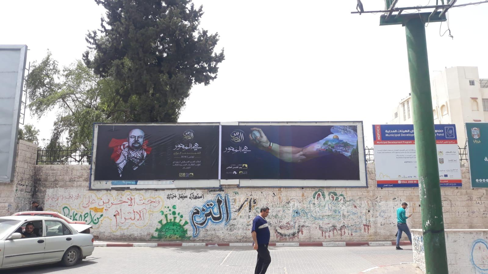 ورفعت صور الشهيد جهاد مغنية وحسان اللقيس الى جانب صور شهداء من غزة والضفة اضافة الى عبارات للأمام الخميني (رضوان الله عليه) حول القدس.