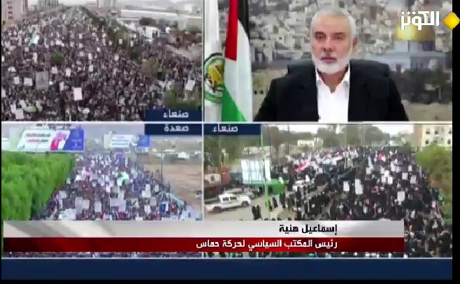 وشارك إسماعيل هنية، عبر الفيديو بإحياء يوم القدس العالمي مع الشعب اليمني، قائلاً إنّ "هذا الحضور اليمني يؤكد أنّ القدس في قلب صنعاء".