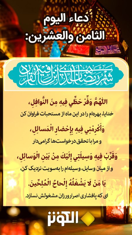 اللهم وفر حضي فيه من النوافل واكرمني فيه باحضار المسائل وقرب فيه وسيلتي اليك من بين الوسائل، يا من لا يشغله الالحاح المحلين.