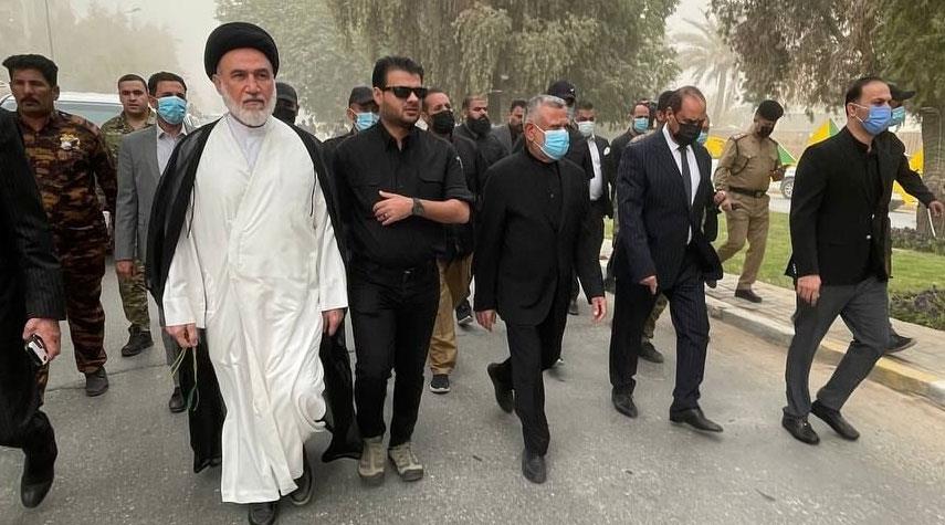 وحضر الأمين العام لمنظمة بدر هادي العامري وزعيم إئتلاف دولة القانون نوري المالكي مراسم تشييع الفقيد عبدالكريم الأنصاري برفقة عدد من القادة السياسيين في العاصمة بغداد.