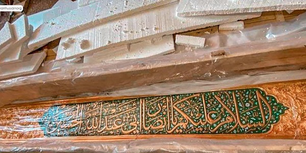 واضاف "تم نصب لوحة أعلى شباك الشهداء (عليهم السلام)، بطول 5 أمتار و20 سم، وبارتفاع 42 سم، يتوسطها مقطع من المينا الشذرية مكتوب عليها جزء من زيارة الشهداء (عليهم السلام)".