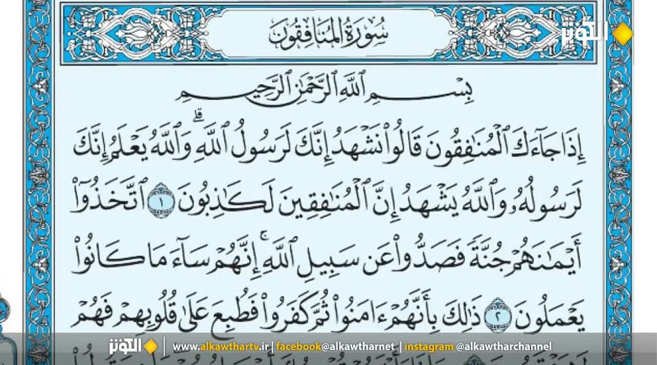 إِذَا جَاءَكَ الْمُنَافِقُونَ قَالُوا نَشْهَدُ إِنَّكَ لَرَسُولُ اللَّهِ وَاللَّهُ يَعْلَمُ إِنَّكَ لَرَسُولُهُ وَاللَّهُ يَشْهَدُ إِنَّ الْمُنَافِقِينَ لَكَاذِبُونَ