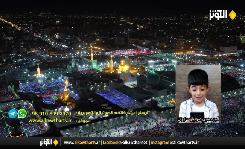 ايران _خاص الكوثر: الزيارة بالنيابة في حرم الامام الرضا عليه السلام ، اطلبوا حاجتكم وارسلوا صوركم او مشاركتكم الصوتية او فيديوهاتكم لبرنامج " مع الامام الرؤوف " من اعداد قناة الكوثر الفضائية والذي سيعرض في تمام الساعة 8 بتوقيت مكة المكرمة.