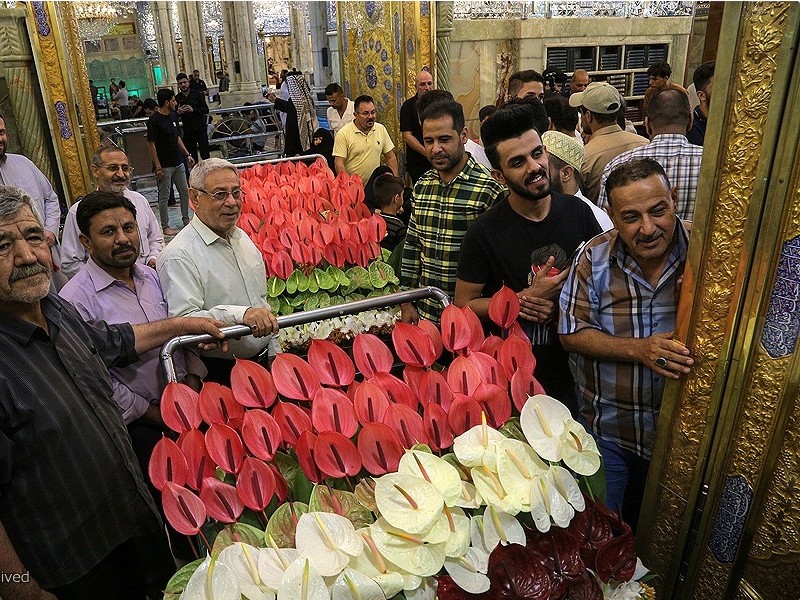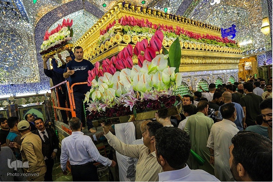 شاهد.. تزيين ضريح الإمام علي (ع) بالورود استعدادا للاحتفال بعيد الغدير الأغر