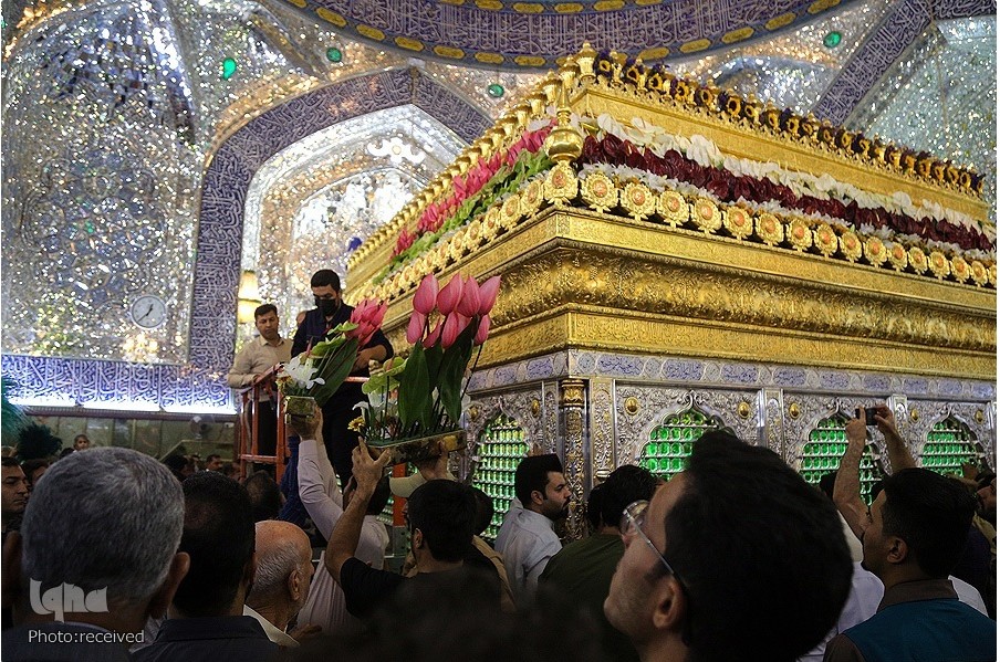 العراق-الكوثر: ضمن الاستعدادات الجارية للاحتفال بعيد الغدير الأغر، تم مساء الجمعة 15 يوليو / تموز 2022 للميلاد تزيين ضريح المرقد العلوي المطهر في النجف الأشرف بالورود الطبيعية ورفع الرايات التي حملت عنوان المناسبة، وذلك خلال الحفل الذي حضره الأمين العام للعتبة العلوية المقدسة وحشد من الزوار.