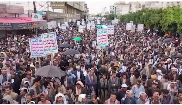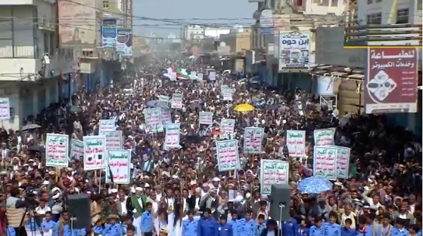 وفي العاصمة صنعاء، خرجت مسيرة جماهيرية كبرى، حضرت فيها القضية الفلسطينية، إذ أكد المشاركون التشابه بين القضيتين اليمنية والفلسطينية ومظلومية الشعبين الذين يتعرضان للعدوان والقتل والقصف والتدمير من قبل قوى الاستكبار العالمي أمريكا والصهيونية.