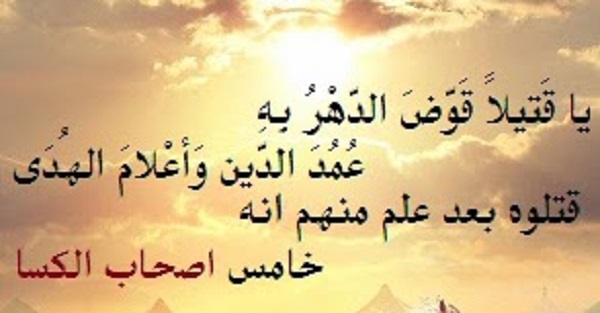قَتَلوهُ بَعدَ عِلمٍ مِنهُمُ **** أَنَّهُ خامِسُ أَصحابِ الكِساء