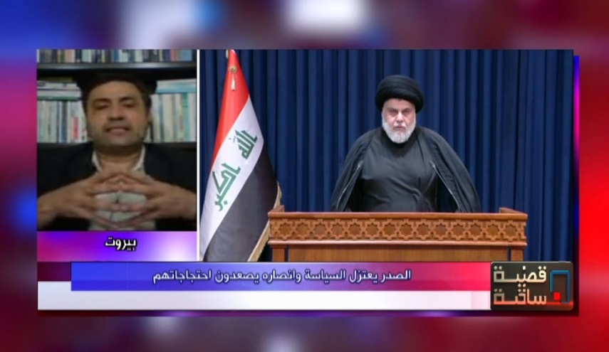 وأضاف الدكتور علي بيضون : ومع استمرارالانسداد السياسي و كما ان العملية السياسية لم تفضي الى أي نتائج توصل الى اختيار حكومة  متوازنة توافقية بين كل أطياف المجتمع العراقي وبالتالي لم يستطع تأليف هذا الحكومة واعتراضا على هذه الحالة التي لم تمكنه من اختزال السلطة او احتكار تشكيل الحكومة ولذلك انسحب من الحياة السياسية وخرج باستقالات النواب الثلاثة والسبعون واليوم أعلن السيد مقتدى الصدر انسحابه من العملية السياسية بشكل نهائي.