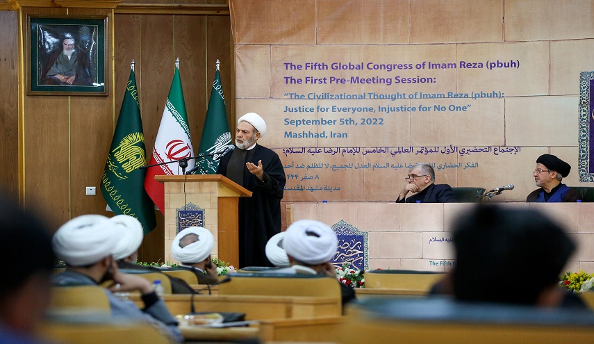 عقد يوم امس الاثنين في مدينة مشهد المقدسة شمال شرق إيران الاجتماع التمهيدي الأول للمؤتمر العالمي الخامس للإمام الرضا (عليه السلام) تحت عنوان "العدل للجميع، ولا لظلم أحد".