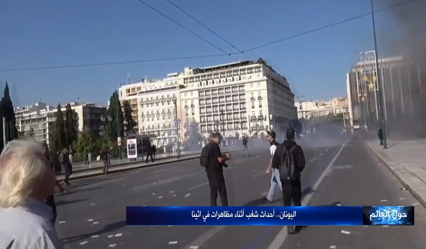وألقى عدد من المتظاهرين زجاجات حارقة على الشرطة أمام النصب التذكاري للجندي المجهول قرب مقر البرلمان اليوناني في العاصمة أثينا.