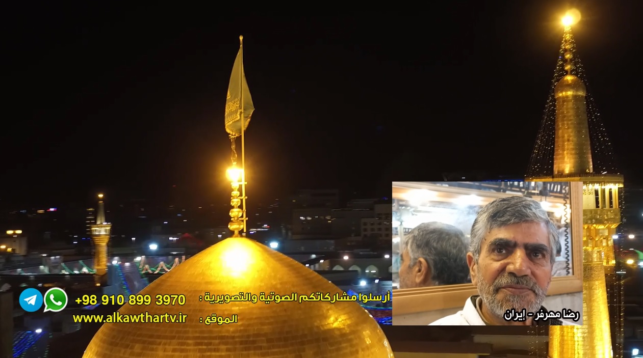 اطلب حاجتك وكن مع الامام الرضا عليه السلام عبر مشاركتك برسالة صوتية أو فيديو على شاشة قناة الكوثر الفضائية .