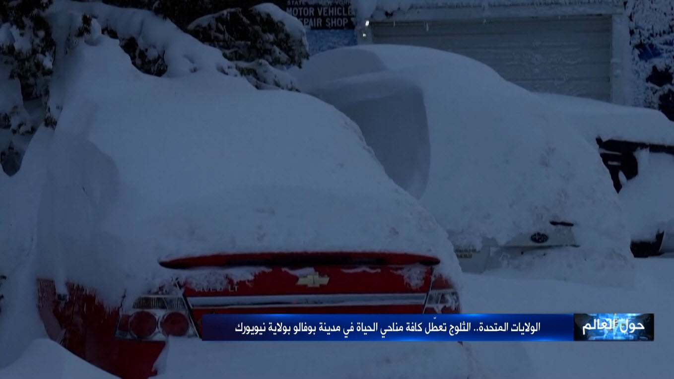تسبب تساقط الثلوج بكثافة في حدوث فوضى باجزاء بولاية نيويورك شمال شرقي الولايات المتحدة وادت العاصفة بالفعل الى الغاء عشرات الرحلات الجوية في مطار بافالو الدولي اضافة الى اغلاق طرق وحظر قيادة السيارات في غرب الولاية.