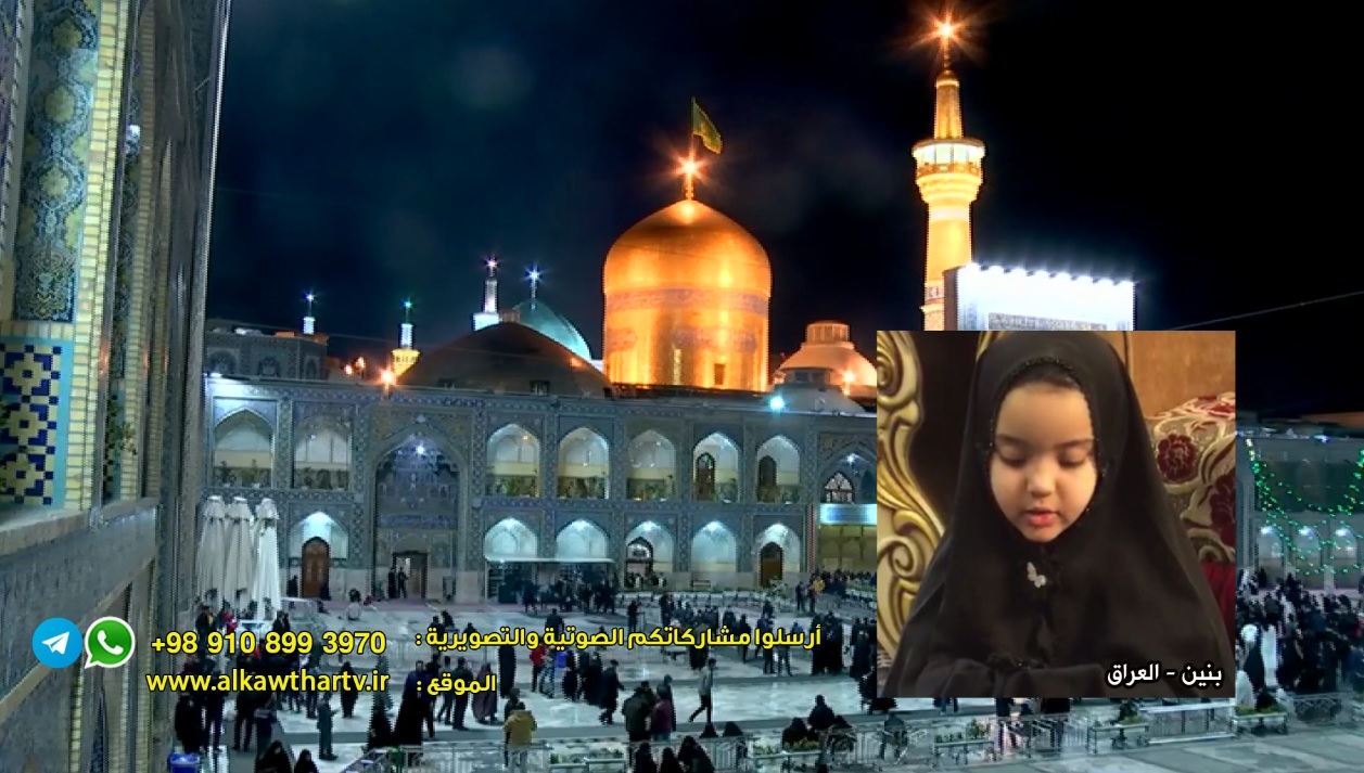 اطلب حاجتك وكن مع الامام الرضا عليه السلام عبر مشاركتك برسالة صوتية أو فيديو على شاشة قناة الكوثر الفضائية .