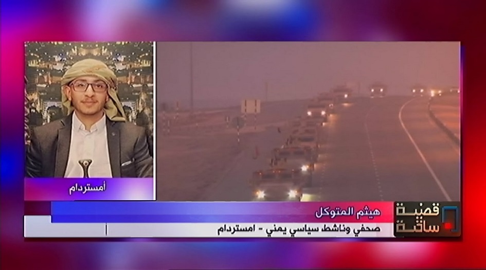 أكد الصحفي المتوكل : قد تبين للشعب اليمني أن جميع ماتقوم به دول العدوان خلال الثمان السنوات السابقة من سرقات للثروات اليمنية وإلى ما ذلك من ثروات يمتلكها الشعب اليمني والآن الإمارات تريد أن تضيف طابع شرعي لإحتلال اليمن مثل مافعلت السعودية في السابق عندما أدعت أنها اتفقت مع الرئيس المخلوع (عبد ربه منصورهادي) وشرعنت إحتلالها لليمن وبينت نفسها أمام المجتمع الدولي ومجلس الأمن إنها تساعد اليمن ولديها طابع شرعي للتبرير عدوانها على الشعب اليمني ورغم كل ذلك لن يبرر لها جرائمها بحق أبناء الشعب اليمني، وبالتالي ما تقوم به الامارات حاليا هو نفسه فعل السعودية في السابق محاولة شرعنة التدخل أوالإحتلال لليمن .