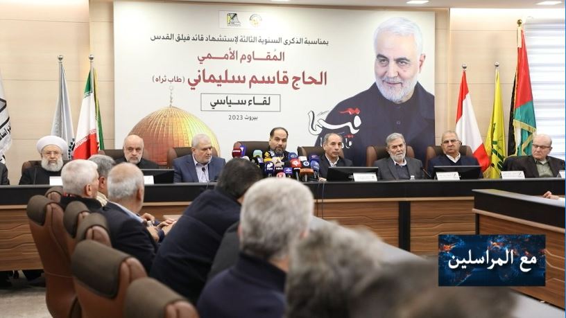 بمناسبة الذكرى السنوية الثالثة على استشهاد قائد فيلق قدس الشهيد قاسم سليماني اثر جريمة الاغتيال الامريكية الاثمة اقام مركز باحث للدراسات الفلسطينية والاستراتيجية لقاء سياسي حضره سفير الجمهورية الاسلامية الايرانية مجتبى اماني ورؤوساء الاحزاب والفصائل الفلسطينية واللبنانية وممثلون عنهم، وشارك فيه ايضاً عدد من الباحثين والشخصيات الفكرية والسياسية والاكاديمية.