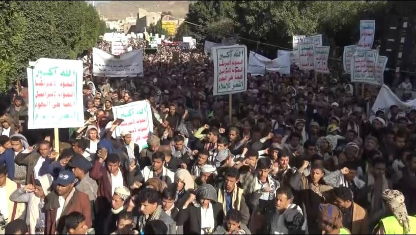 حیث خرج الیمنییون فی أکثر من مسیرة منددین بإحراق المصحف الشریف في دولة السوید مؤکدین نصرتهم للمقدسات الإسلامیة وأهمها القرآن الکریم والرسول الاکرم صلی الله علیه و آله .