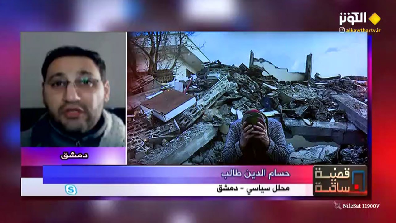 وقال طالب : أولا نشكر الجهود والمساعدات المقدمة من قبل الجمهورية الإسلامية الإيرانية للشعب السوري المتضرر جراء الزلزال الذي وقع فجر الإثنين الماضي، فالمسلم أخو المسلم وهذه عقيدة وسياسة الجمهورية الاسلامية الايرانية دائماً في الوقوف لجانب الشعوب المسلمة والشعوب المظلومة والمستضعفة، ايران كانت ومازالت تثبت إنها دولة ايمان وإسلام ودولة تحترم الإنسانية .