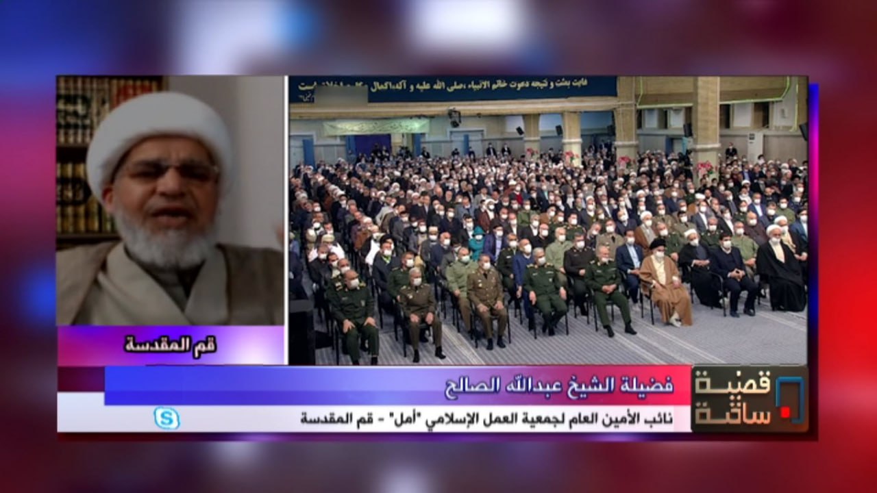 وقال الشيخ عبدالله صالح : في الحقيقة لا يوجد احد في العالم لا يقدر ولا ينظر الى ما تقوم به الجمهورية الاسلامية من دعم واضح للقضية الفلسطينية، والاكثر ، الجمهورية الاسلامية الايرانية تضع مصالحها العليا بعد القضية الفلسطينية، ما سبب ازمة الجمهورية الاسلامية مع دول الاستكبار العالمي غير القضية الفلسطينية، وماذا يريد الغرب من الجمهورية الاسلامية غير التنازل عن القضية الفلسطينية وعن دعم القضية الفلسطينية كما تنازلت الكثير من الدول الاسلامية والعربية عن القضية الفلسطينية ، ما الذي يمنع ان تفتح خزائن الارض امام الجمهورية الفلسطينية غير دعمها للقضية الفلسطينية، ولهذا السبب الشعب الفلسطيني يقدر ويثمن هذا الموقف العظيم، ونر جميع فصائل المقاومة تثمن وتشيد بهذا الدور، وهو في الحقيقة قليل بحق الجمهورية الاسلامية الايرانية، لان هذا من المبادئ الاساسية التي انبثقت عنها وتدافع عنها ومن غير الممكن ان تتنازل عنها في يوم من الايام.