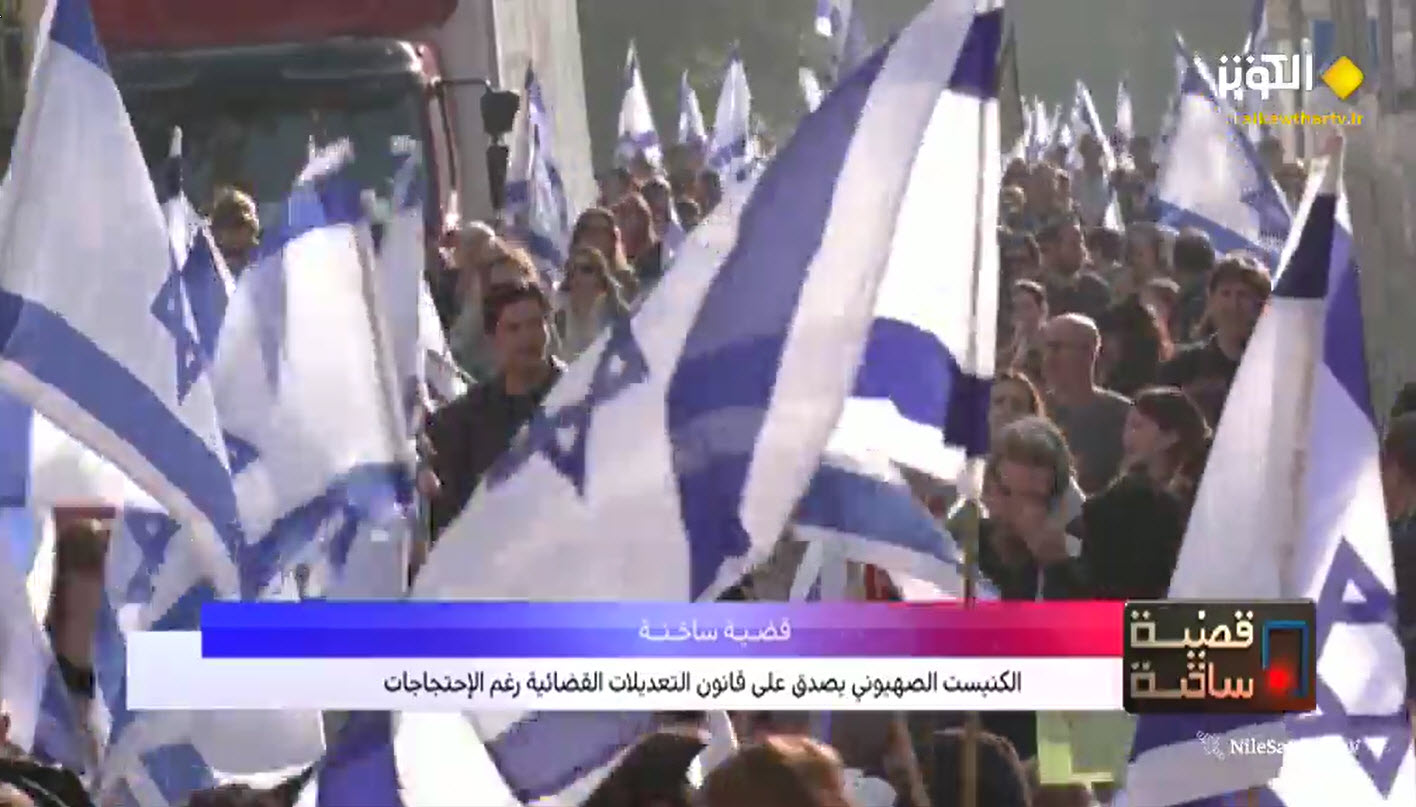 وقبل التصويت تظاهرات عشرات الاف من الصهاينة امام مقر الكنيست احتجاجاً على شروع البرلمان في اجراءات اقرار مشروع القانون الجديد.