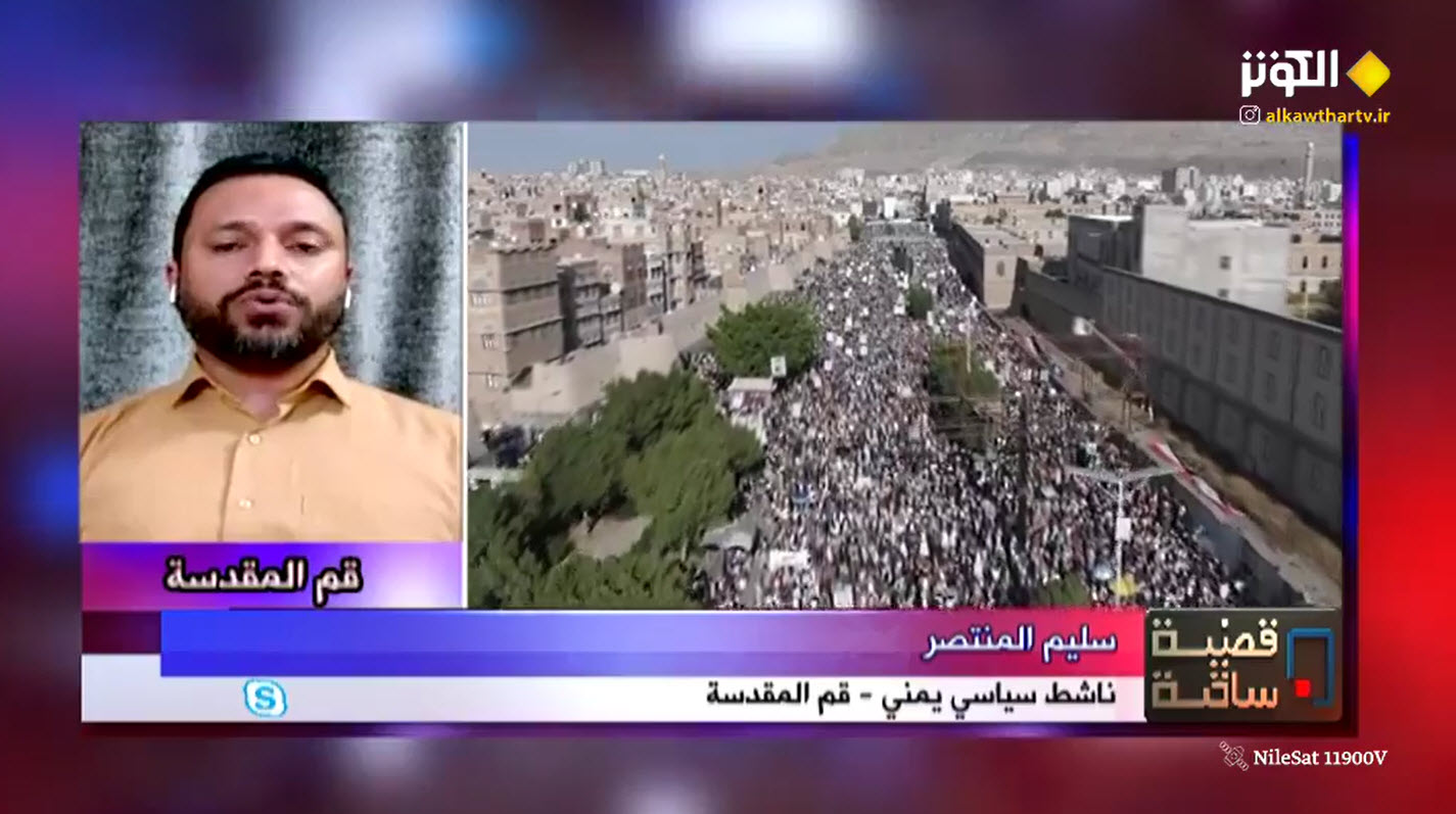 وأردف المنتصر :والرسالة الثانية هو تأكيد تضامن الشعب اليمني مع الشعب الفلسطيني الذي عاني ماعانه من الكيان الصهيوني الغاشم ، وجل مايعانيه اليمن هو بسبب ذلك الكيان بالتعاون مع أمريكا ، فالسعودية - لا ناقة لها ولاجمل - كانت مجرد أداة وعميلة قامت بذرف دماء اليمنيين لتحقيق مصالح أمريكا والغرب .
