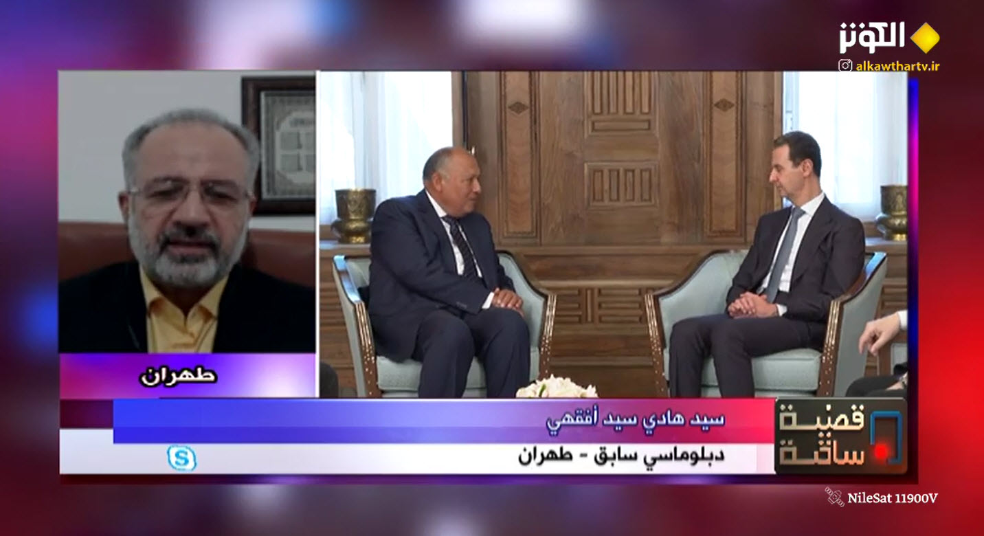 واردف سيد افقهي قائلا: زيارة وزير الخارجية المصري "سامح شكري" تأتي لتقديم المواساة والدعم الاخلاقي للشعب السوري، وكما اشار وزير الخارجية المصري بنفسه الى ذلك، ولن يتحدث احد عن ترقية العلاقات الدبلوماسية فهناك مسارات لاعادة العلاقات بين سوريا والدول التي قطعت علاقاتها مع هذا البلد لاعادة العلاقات.