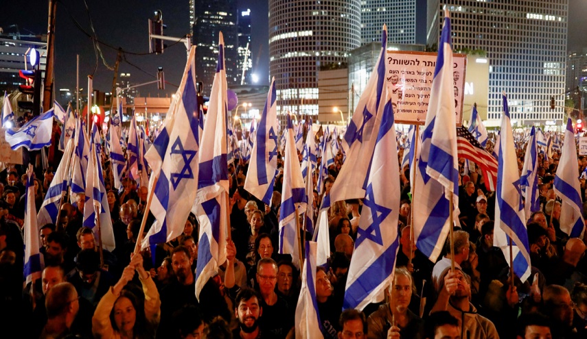 وقال الخبير في الشؤون الاسرائيلية "عماد منى": " إن التظاهرات تجوب مدن الكيان المحتل من شمالها الى جنوبها وهي في تعمق وتزايد وهذا سيقلب الطاولة على حكومة نتنياهو المتطرفة وفي نهاية المطاف سيطيح بها".