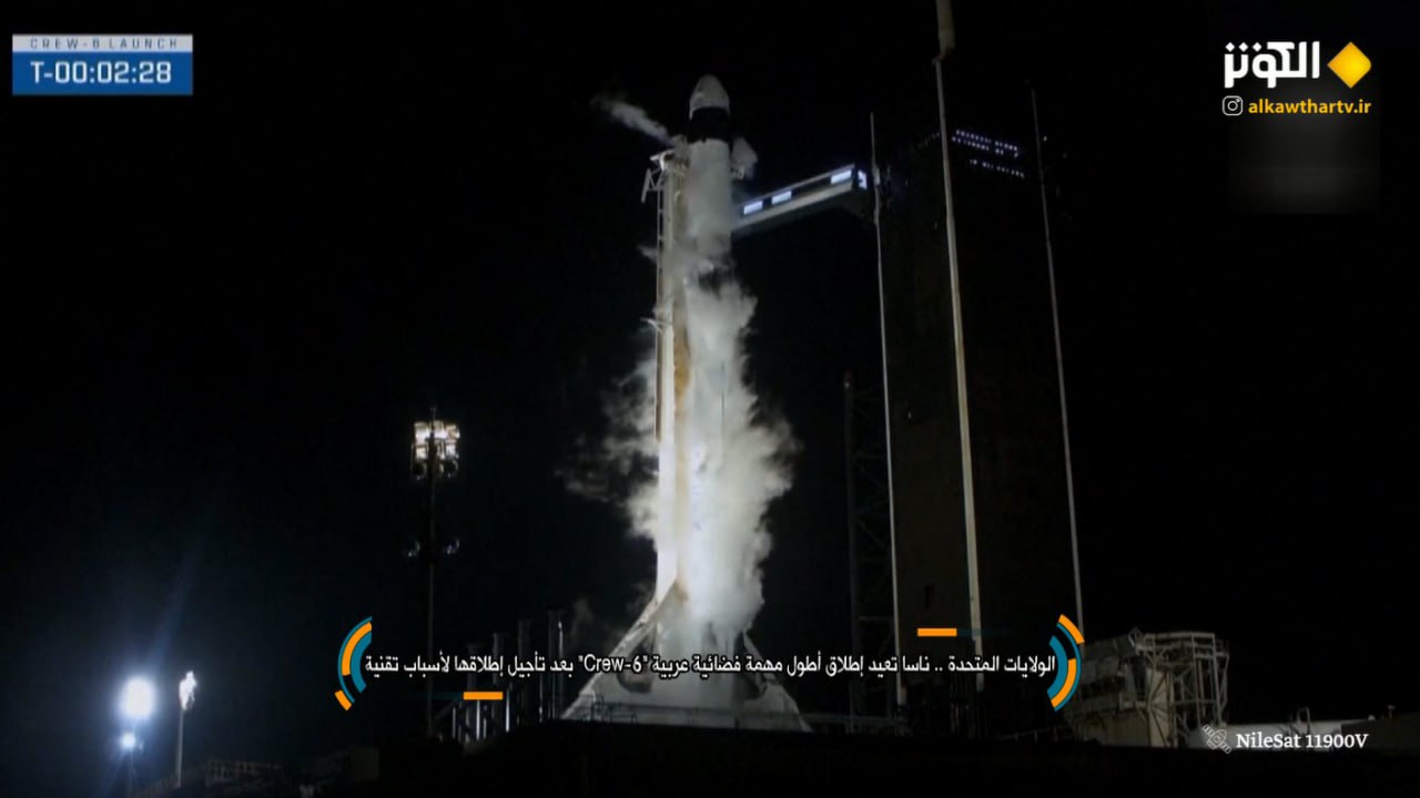 وکان طاقم مهمة کروز6 قد استعد مغادرة مبنى نیل امسترونغ للعمیلات في مرکز کلیدي للفضاء وغادر النیادي و زملائه بطاقم کروز 6 الى مجمع الاطلاق والقوا نظرة على صاروخ فالکون 9 و صاعدوا الى الممر المعدي الى مرکبة دراغون.