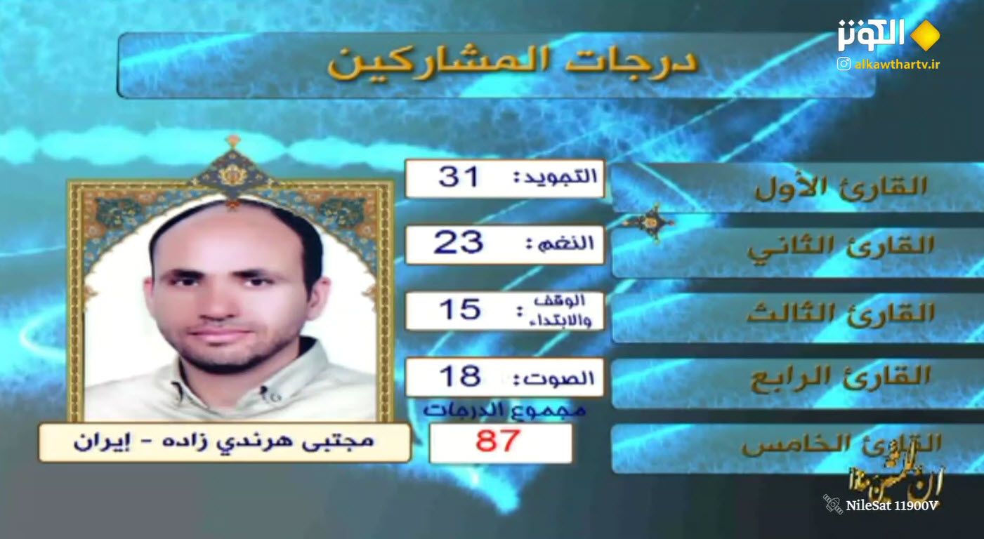 كما نال المتسابق المشارك من إيران "مجتبی هرندي زاده " على 87 درجة.