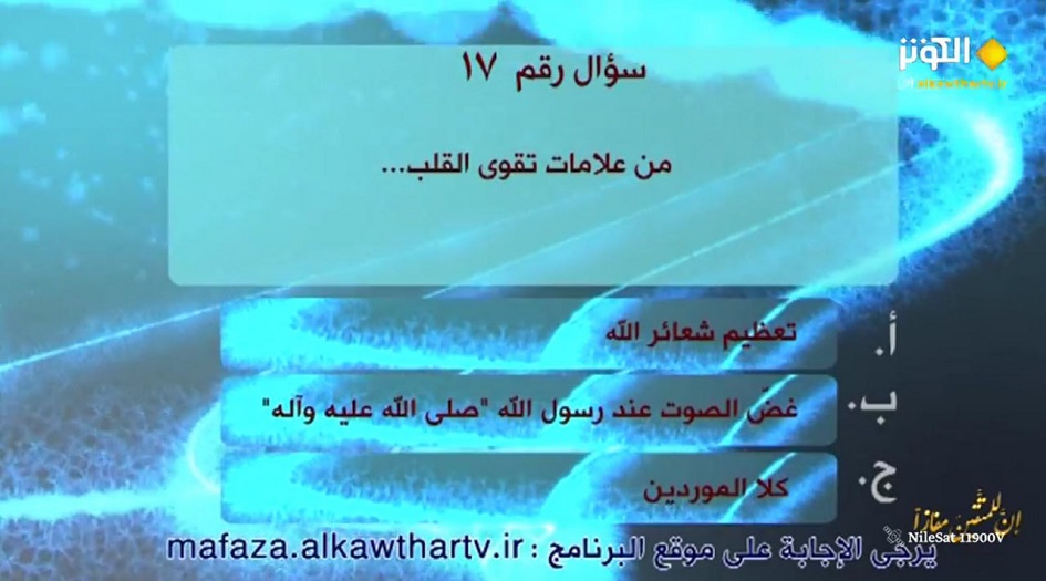 تابعوا مجريات المسابقة القرآنية علی موقع قناة الكوثر الفضائية و مواقع التواصل الاجتماعي الخاصة بقناة الكوثر الفضائية.