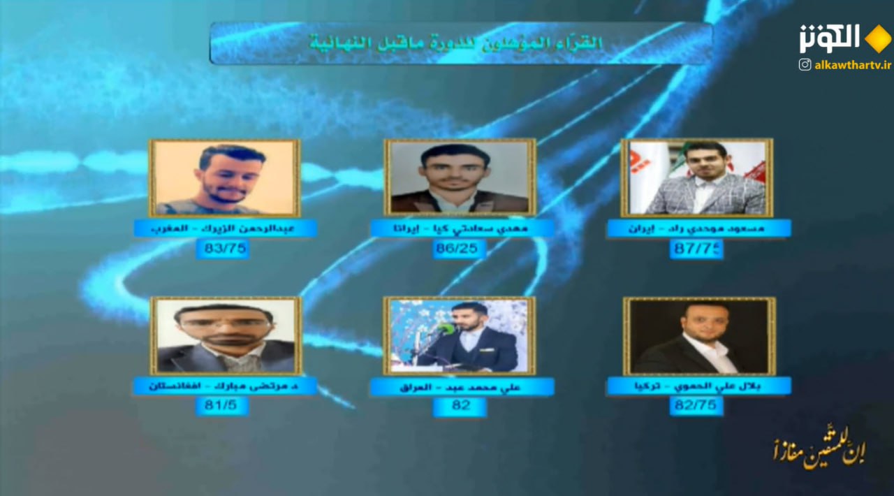 و اخیرا القاریء المشارك" مرتضى مبارك" من افغانستان حصل علی 81/5 درجة