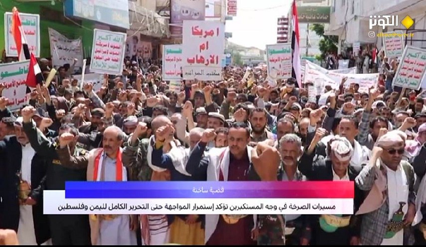 حيث شهدت صنعاء والمدن اليمنية الاخرى مسيرات حاشدة بمناسبة الصرخة الدولية في وجه المستكبرين تحت عنوان الشعار سلاح وموقف .