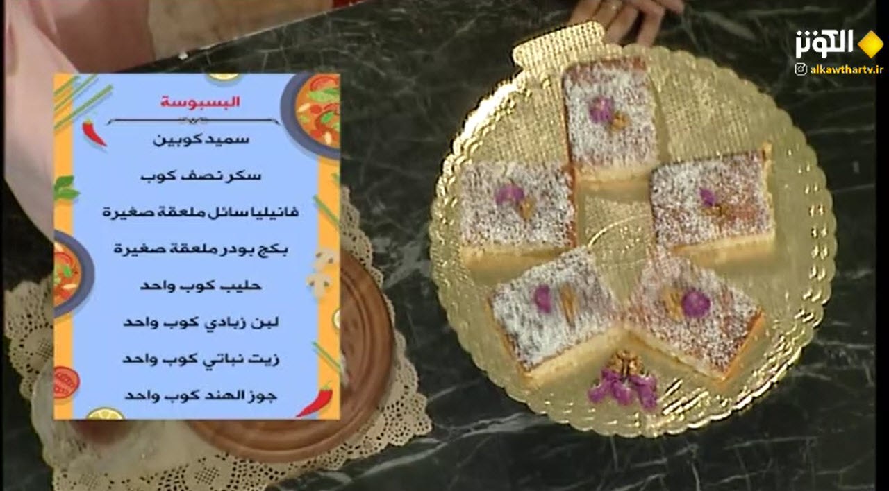 قدمت السيدة انتظار ملكشاهي خلال فقرة الطبخ في برنامج خلية حب طريقة تحضير "البسبوسة" واليكم المكونات والمقادير: