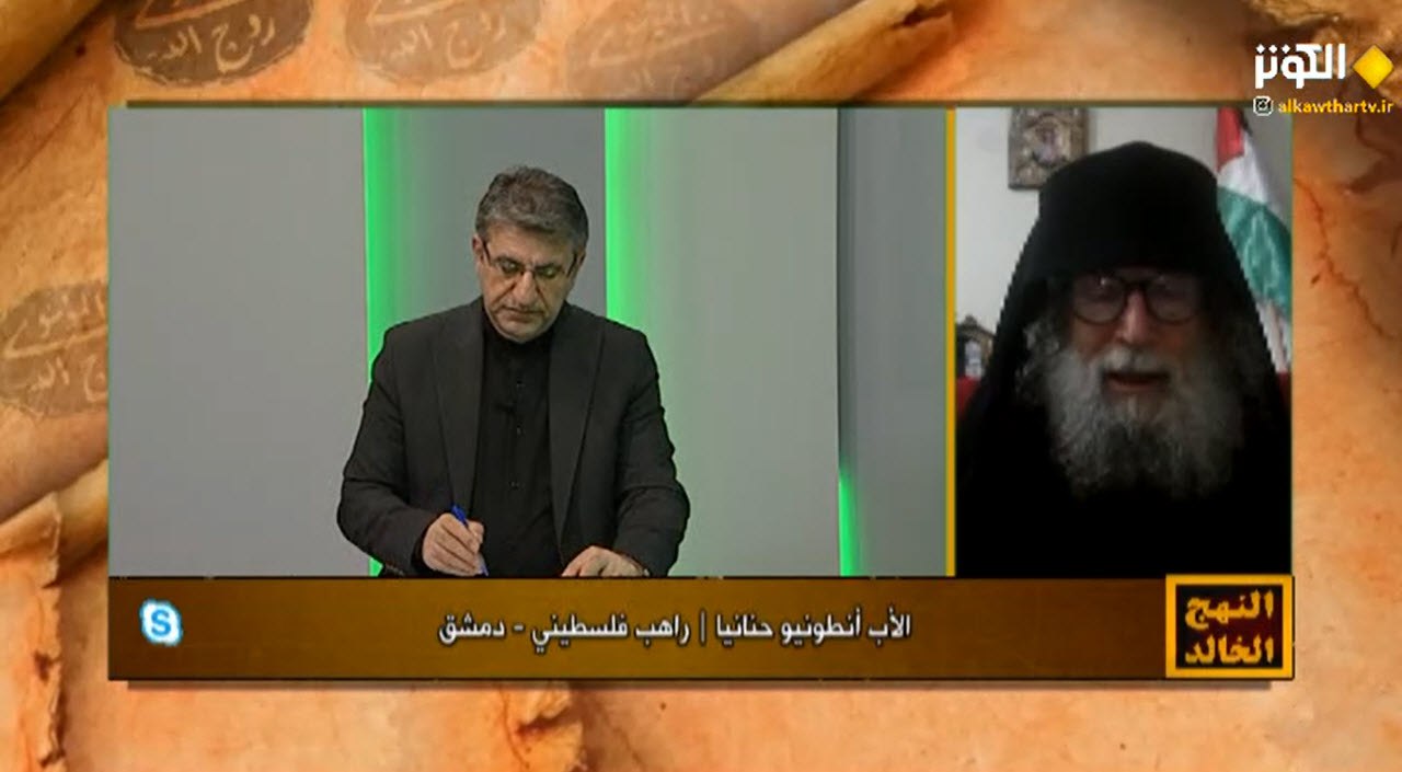 وجسد الاب حنا دعم الجمهورية الاسلامية للقضية الفلسطينية بشخص الفريق "الشهيد قاسم سليماني" وقال الشهيد سليماني لم يميز يوماً بين مسلم ومسيحي وركز على الله سبحانه وتعالى فقط والذي هو قبلة الجميع.