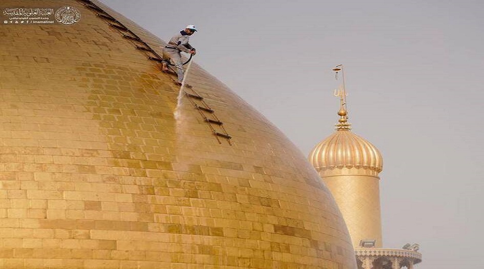 على اعتاب عيد الغدير الاغر... غسل قبة ومنارتي مرقد الامام علي عليه السلام