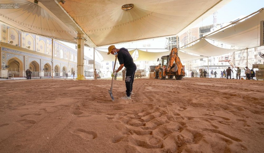 وأضاف: "المساحة المخصّصة لإقامة الشعيرة قاربت 3 آلاف متر مربع وبكمية رمل 525 متراً مكعبَّاً وبسمك 10- 15سم ، كمرحلة أولى ثم المرحلة الثانية من عملية الإكساء ستكون في شارع الجواهري خدمةً للمواكب المعزية".