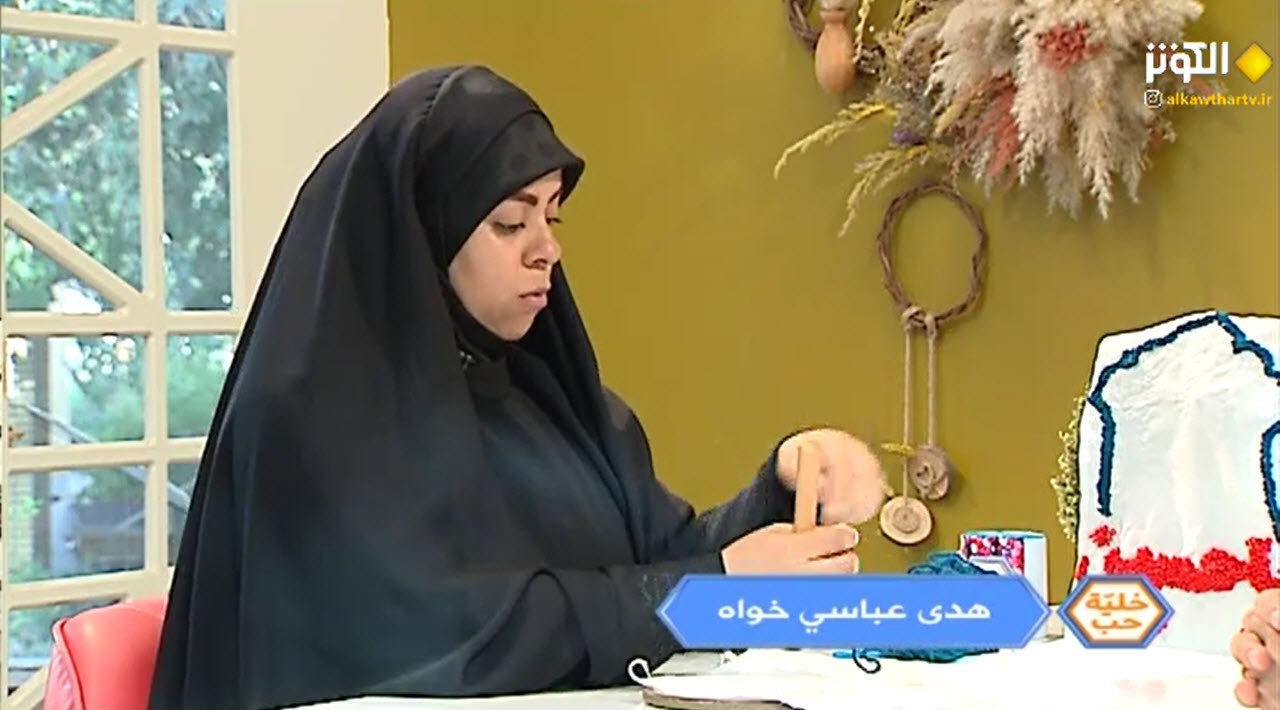 شرح السيدة هدى عباسي خواه حول حياكة بالصوف أشكال " شبيه بالسجاد" والتي يمكن حياكتها على الالعاب او الاقمشة وغيرها