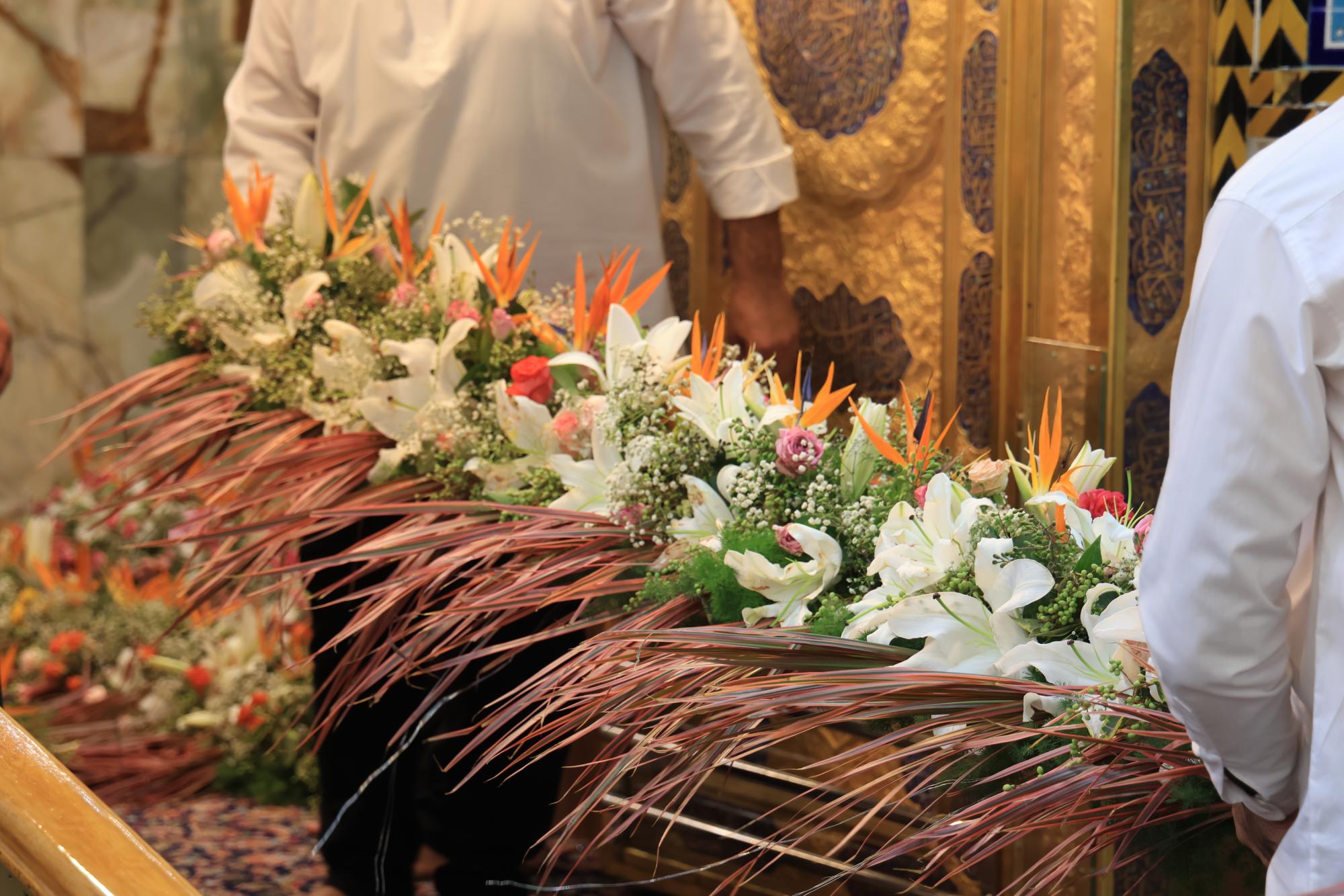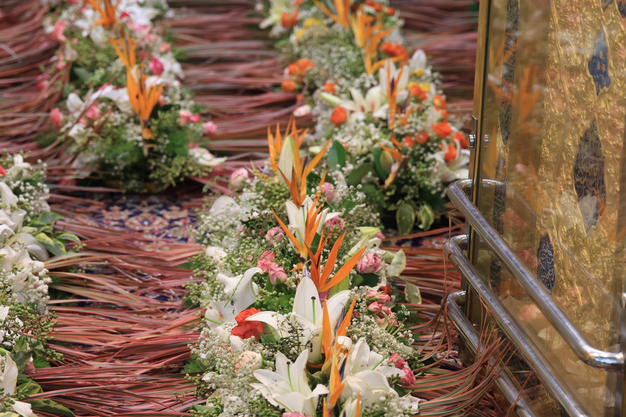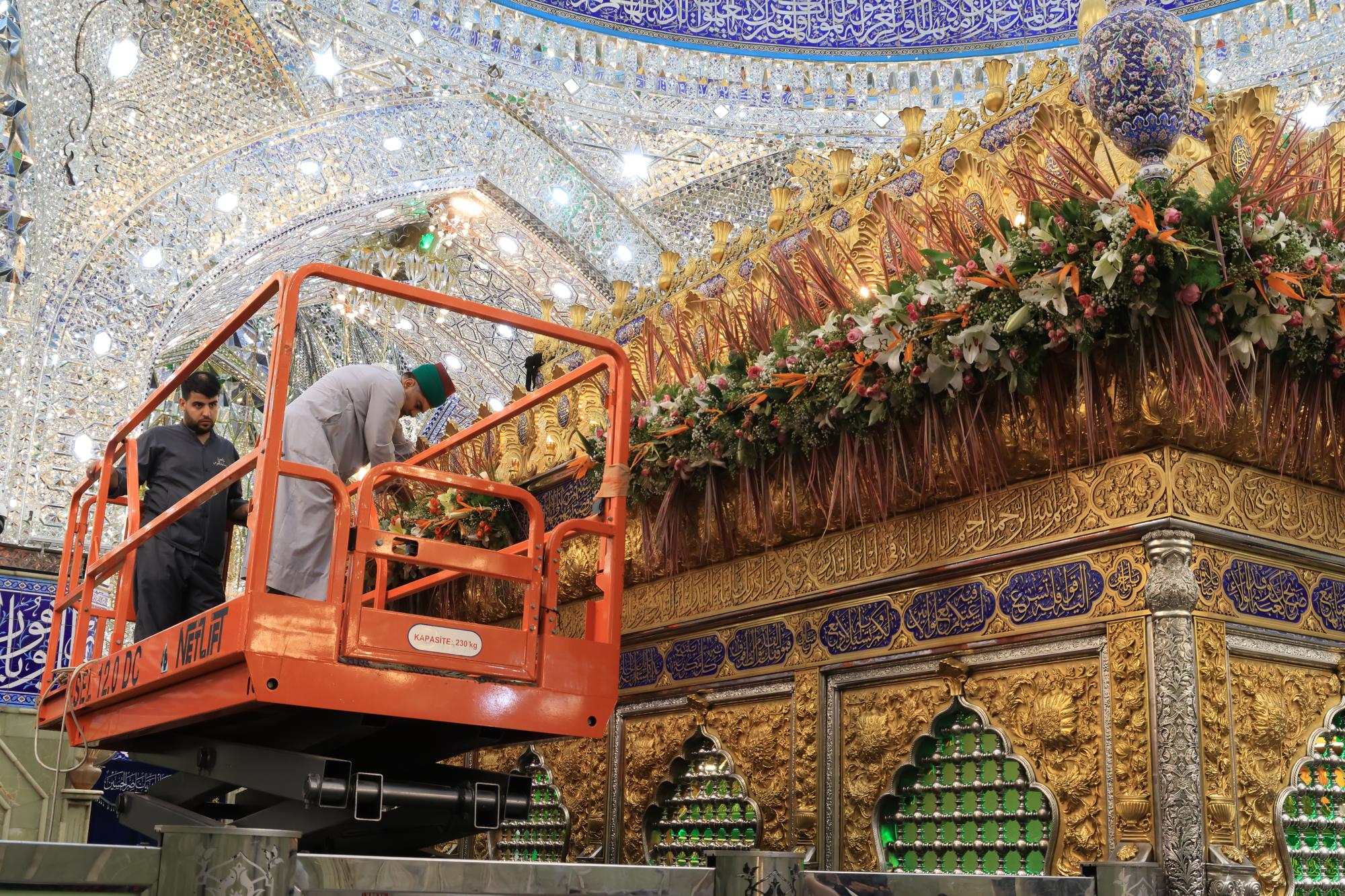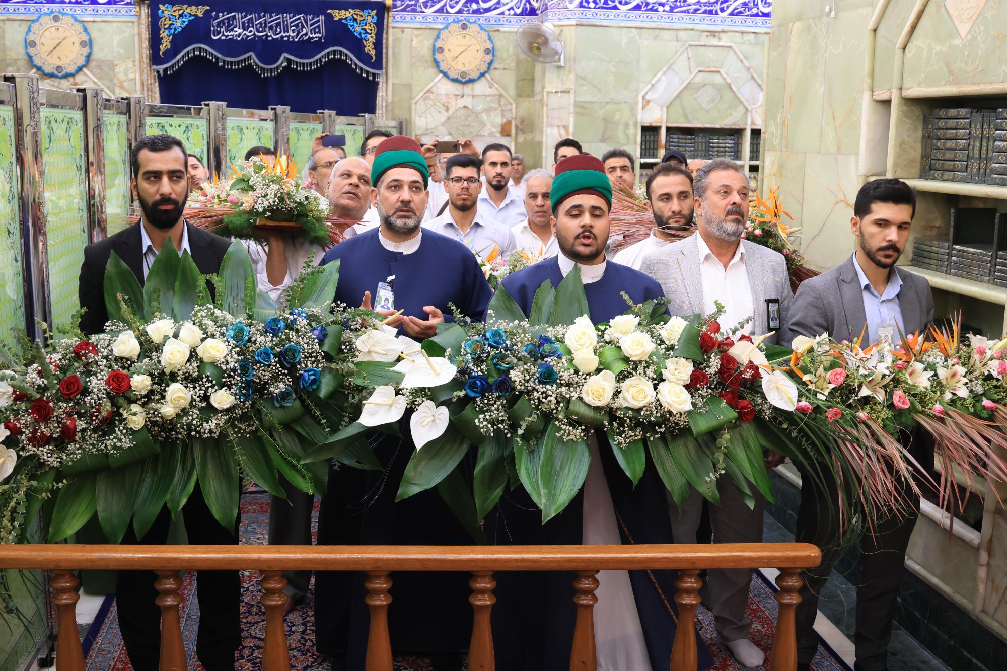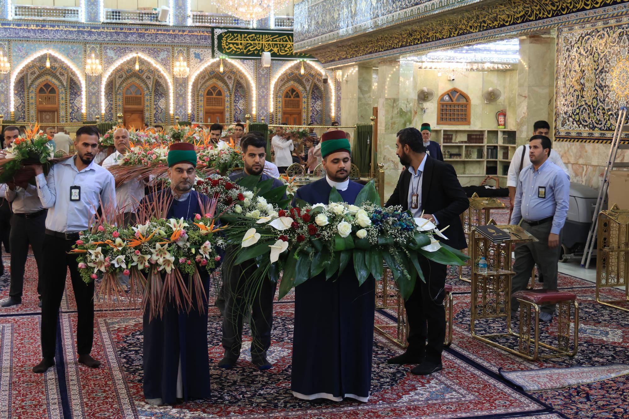 وقال مسؤول الشعبة السيد عقيل الطيف "بتوجيه الأمانة العامة للعتبة العبّاسية المقدّسة، أكملت ملاكات شعبة الحرم الشريف رفع أكاليل الورد فوق الضريح المطهّر لأبي الفضل العبّاس (عليه السلام)".