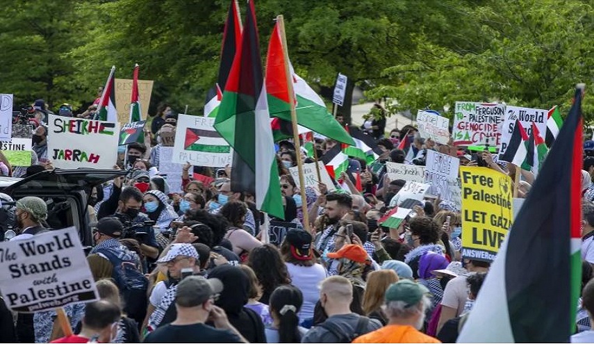 وهتف المتظاهرون کفی ظلماً داعمين الشعب الفلسطيني.