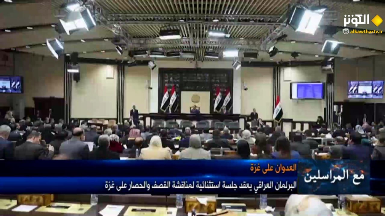 فقد كانت القضية الفلسطينية حاضرة في البرلمان العراقي في جلسة استثنائية عقدت من أجل مناقشة التطورات المتسارعة في قطاع غزة وتدهور الأوضاع الإنسانية نتيجة القصف الصهيوني الوحشي، حيث خرجت هذه الجلسة بتوصيات أبرزها: حث الحكومة العراقية على دعم غزة والمقاومة من خلال المساعدات الطبية والغذائية .