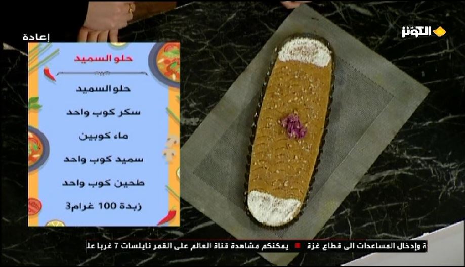 حلو السميد، سكر كوب واحد، ماء كوبين، سميد كوب واحد،طحين كوب واحد، زبدة 100 غرام.