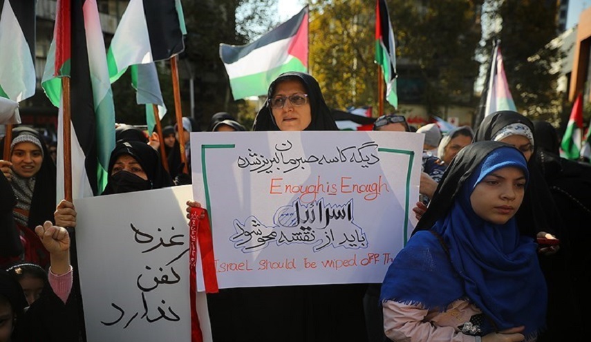 وأعلنت المشاركات عن غضبهن، ورددن شعارات "الموت لإسرائيل" و"الموت لأمريكا"، "الله أكبر"، و"صمت كل مسلم خيانة للقرآن"، و"الموت للصهاينة".