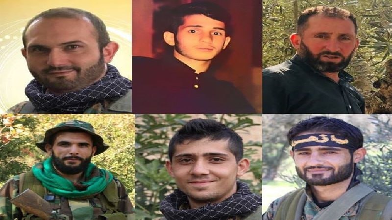 وحسب بيان المقاومة الشهداء المجاهدين: إسماعيل أحمد الزين "حيدر علي" من بلدة شحور، بلال نمر رميتي "أبو علي نور" من بلدة المجادل، علي خليل خريس "حيدر" من بلدة الخيام، عباس بسام شومان "أبو الفضل" من بلدة النبي نعام في بعلبك، إبراهيم حسن عطوي "أبو تراب" من بلدة الصوانة، ووسام محمد حيدر "أحمد عباس" من مدينة مرجعيون وسكان بلدة دبين جنوب لبنان، والذين ارتقوا أثناء قيامهم بواجبهم الجهادي.